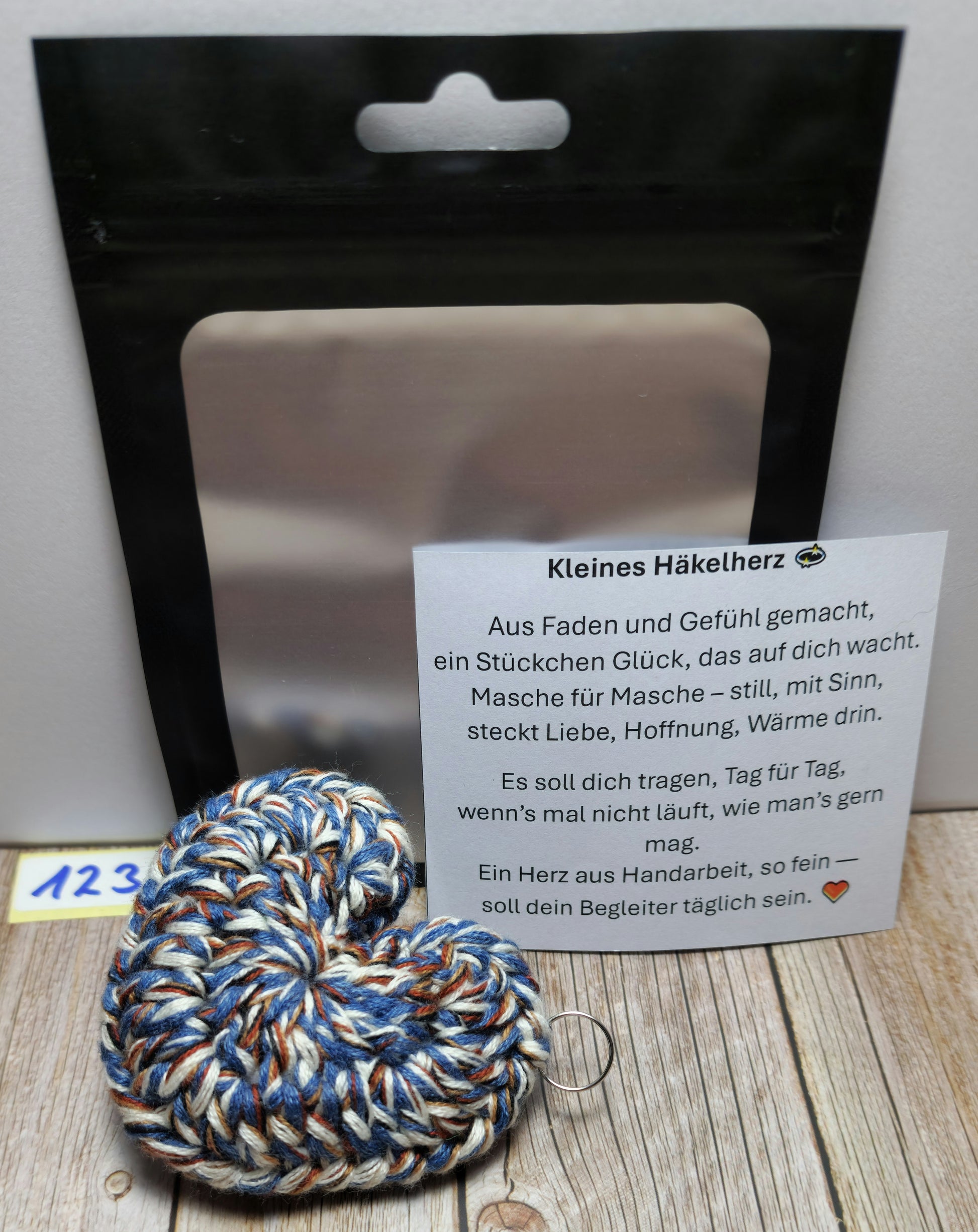 Das Herz besteht aus einer hochwertigen Garnmischung aus 50 % Baumwolle und 50 % Polyacryl 🧵 – angenehm weich, formstabil und langlebig. Mit einer Größe von ca. 6 cm ist es kompakt genug für den Alltag, aber groß genug, um ein echter Hingucker zu sein 👀💗.