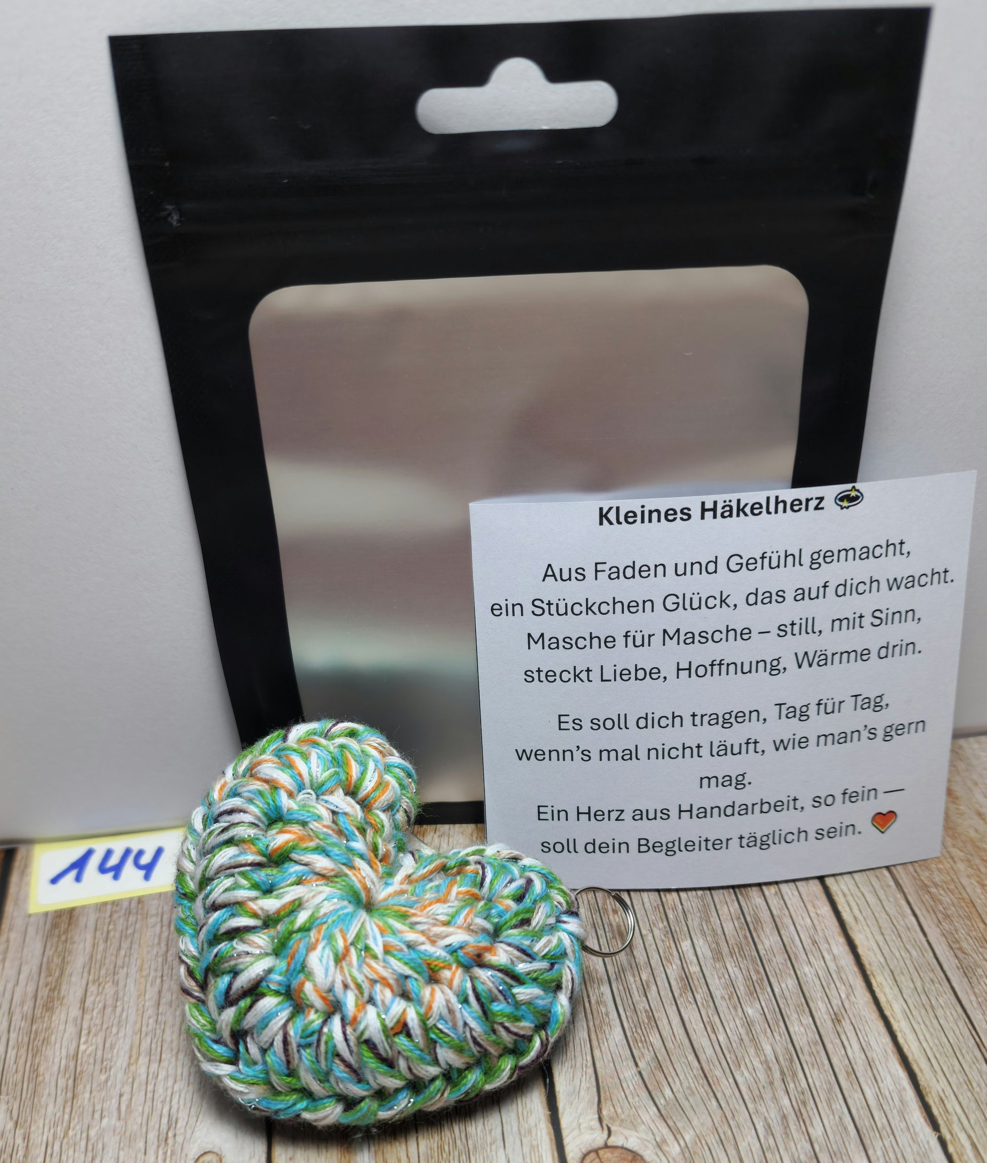Das Herz besteht aus einer hochwertigen Garnmischung aus 50 % Baumwolle und 50 % Polyacryl 🧵 – angenehm weich, formstabil und langlebig. Mit einer Größe von ca. 6 cm ist es kompakt genug für den Alltag, aber groß genug, um ein echter Hingucker zu sein 👀💗.