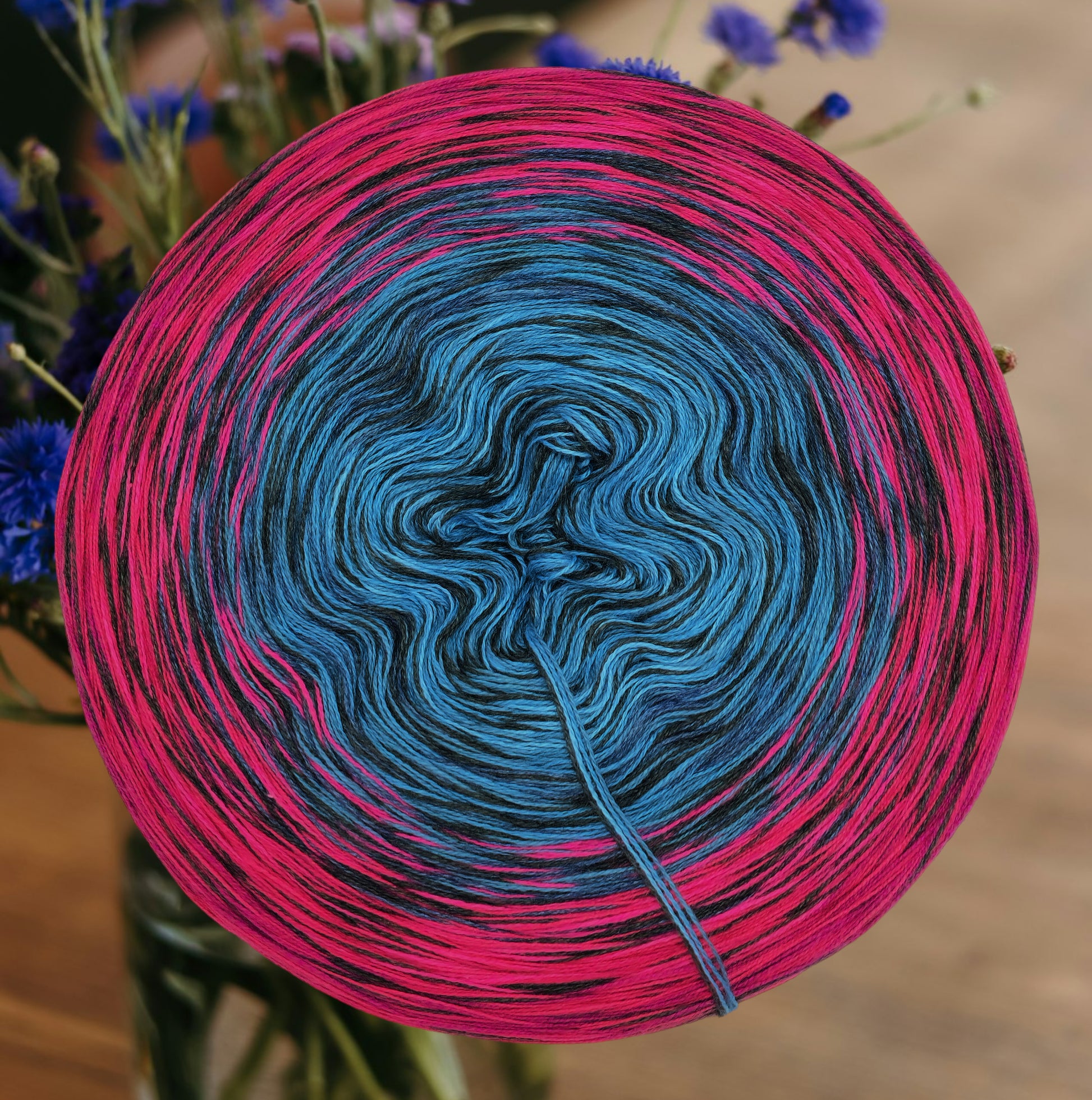 Dieser handgewickelte Bobbel ist ein echtes Einzelstück – einmalig in Farbe und Zusammensetzung, perfekt für kreative Köpfe, die das Besondere suchen.